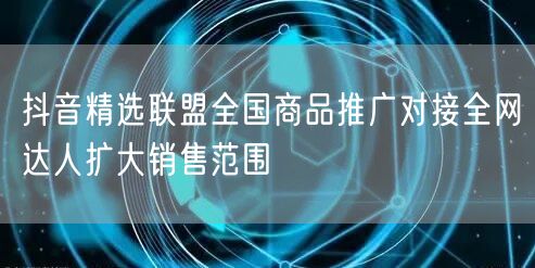 抖音精选联盟全国商品推广对接全网达人扩大销售范围