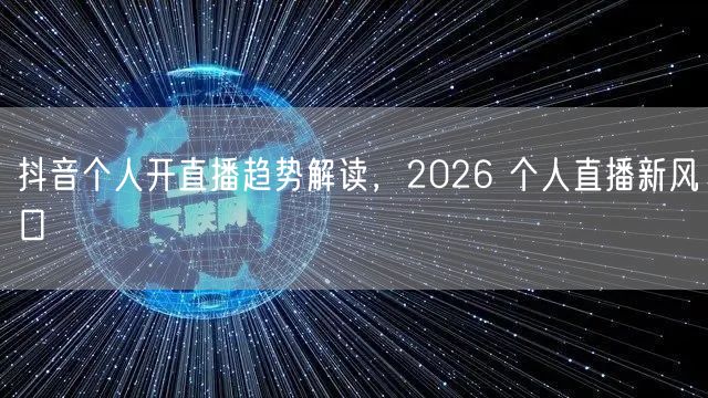 抖音个人开直播趋势解读,2026 个人直播新风口